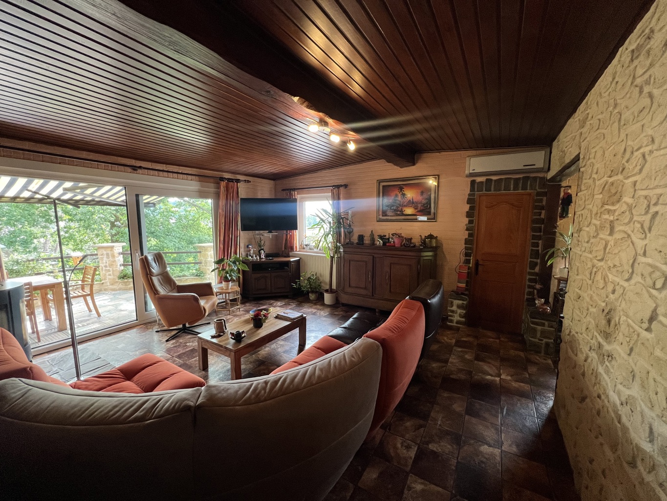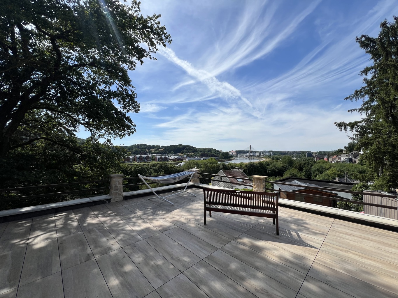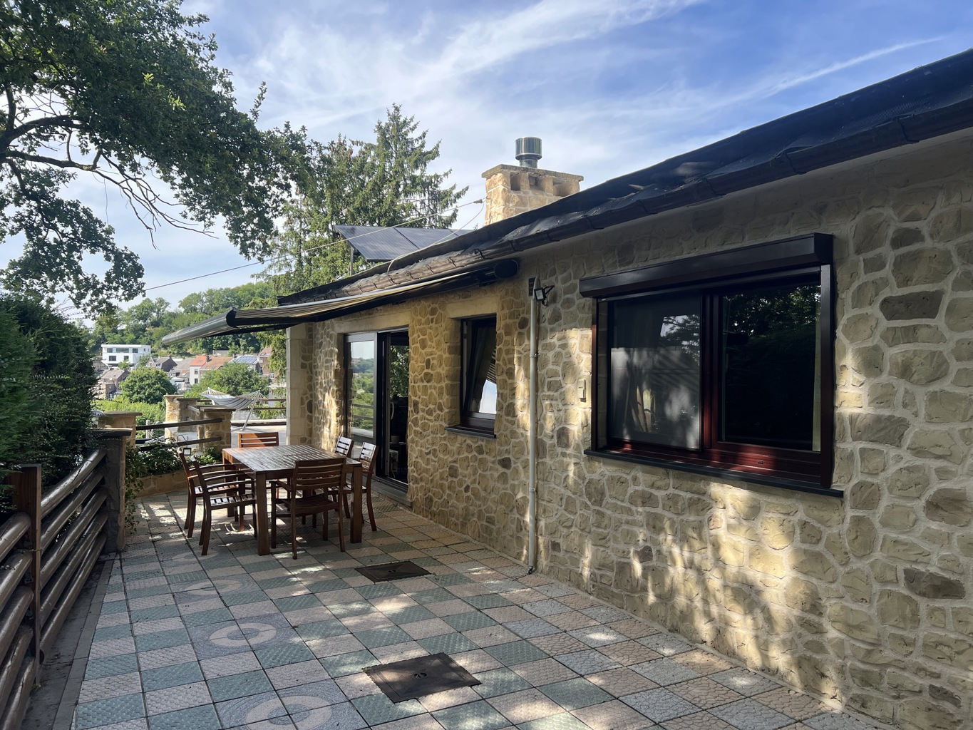 Laissez vous charmer par cette magnifique maison de style provençal avec vue imprenable. Nichée dans un quartier calme, à quelques minutes du centre de Huy et de toutes ses commodités, cette belle maison de caractère de style provençal vous offrira un cadre de vie exceptionnel. Avec une vue dégagée sur la vallée de la Meuse, chaque moment passé ici vous semblera être une invitation à la détente. La maison se compose d'un rez-de-chaussée pouvant accueillir une profession libérale grâce à un hall d'entrée spacieux, un espace bureau (pouvant également servir de chambre !) et un accès au garage avec une porte sectionnelle neuve. A l'étage (de plain-pied avec le jardin et la terrasse) ; un agréable salon avec pompe à chaleur/climatisation et un poêle à bois, une salle à manger chaleureuse et une cuisine équipée ainsi qu'une arrière cuisine. Un hall de nuit, trois chambres (12, 9, 9 m²) et une salle de douche moderne entièrement rénovée complètent l'ensemble. Les coups de cœur de cette propriété : l'allée privative pour un accès aisé, plusieurs terrasses ensoleillées pour profiter des beaux jours avec des expositions différentes (Sud et Ouest), un jardin avec terrain de pétanque et plusieurs cabanons de rangement. Les atouts techniques sont également nombreux : électricité conforme jusqu'en 2049, confort optimal avec des châssis double vitrage récents, un CC mazout performant, une climatisation réversible et un poêle à bois, 25 panneaux photovoltaïques et une citerne d'eau de pluie vous offrant des économies d'énergie, ainsi qu'une sécurité renforcée avec un système d'alarme et des caméras extérieures. PEB classé D E_spec 314 kWh/m².an, E_tot 47.537 kWh/an. Cette maison combine charme, fonctionnalité et confort moderne et vous conviendra parfaitement que vous soyez en quête d'une maison familiale ou d'un bien pouvant accueillir votre projet professionnel. Informations complémentaires et visites au 0471/32.80.45. Cette annonce ne constitue pas une offre.